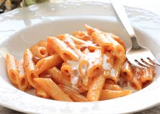 פסטה מובחרת ברוטב שמנת עגבניות מוגש עם גבינת פרמזן ומבחר תוספות.